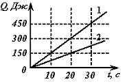 ?) 3 ?) 4 ?) 2 ?) 1 Вопрос id:1828253 На рисунке представлен график зависимости количества теплоты, выделяющейся в двух последовательно соединенных проводниках, от времени.