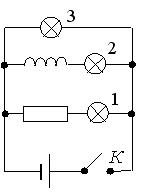 ?) 10 В ?) В?) В?) ВВопрос id:1828255 На рисунке представлена электрическая схема, составленная из источника тока, катушки, резистора и трех ламп.