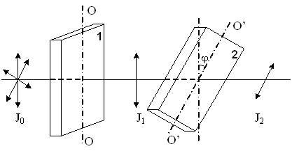 ?) б ?) а ?) г ?) в Вопрос id:1828605 На пути естественного света помещены две пластинки турмалина. После прохождения пластинки 1 свет полностью поляризован. Если J1 и J2 – интенсивности света, прошедшего пластинки 1 и 2 соответственно, и J2= J1, то угол между направлениями OO и O’O’ равен…