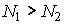, соответственно. При нормальном падении света на дифракционную решетку 1 получено изображение в максимуме m, показанное на рисунке 1. После того, как дифракционную решетку 1 поменяли на решетку 2, изображение максимума m стало таким, как показано на рисунке 2. Постоянная решетки и число щелей у этих решеток соотносятся следующим образом …