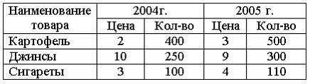 Список вопросов базы знанийОсновы экономической теории (курс 1)Вопрос id:1972893 Тема/шкала: 1657.03.01;Т-Т.01;2 - Тест-тренинг - Основы экономической теории Предположим, что в Республике Вилариби производятся три вида товаров. Цены и объемы их производства представлены в ниже приведенной таблице. Если 2004 г. является базовым, то дефлятор ВВП в 2005 г. равен?) 1,07 ?) 1,03 ?) 1,13 ?) 0,96 Вопрос id:1972894 Тема/шкала: 1657.03.01;Т-Т.01;2 - Тест-тренинг - Основы экономической теории Предположим, что в Республике Каламбии производятся три вида товаров. Цены и объемы их производства представлены в ниже приведенной таблице. Если 2004 г. является базовым, то дефлятор ВВП в 2005 г. равен?) 1,18 ?) 1,12 ?) 0,97 ?) 1,04 Вопрос id:1972895 Тема/шкала: 1657.03.01;Т-Т.01;2 - Тест-тренинг - Основы экономической теории Предположим, что в Республике Каламбии производятся три вида товаров. Цены и объемы их производства представлены в ниже приведенной таблице. Если 2004 г. является базовым, то индекс потребительских цен в 2005 г. равен?) 121,5% ?) 112,4% ?) 105,6% ?) 98,7% Вопрос id:1972896 Тема/шкала: 1657.03.01;Т-Т.01;2 - Тест-тренинг - Основы экономической теории Предположим, что в Республике Кентаврии производятся три вида товаров. Цены и объемы их производства представлены в ниже приведенной таблице Если 2004 г. является базовым, то дефлятор ВВП в 2005 г. равен?) 1,16 ?) 1,23 ?) 1,21 ?) 1,04 Вопрос id:1972897 Тема/шкала: 1657.03.01;Т-Т.01;2 - Тест-тренинг - Основы экономической теории Предположим, что в Республике Кентаврии производятся три вида товаров. Цены и объемы их производства представлены в ниже приведенной таблице Если 2004 г. является базовым, то индекс потребительских цен в 2005 году равен?) 104,7% ?) 98,6% ?) 116,5% ?) 120,1% Вопрос id:1972898 Тема/шкала: 1657.03.01;Т-Т.01;2 - Тест-тренинг - Основы экономической теории Предположим, что в Республике Омега производятся три вида товаров. Цены и объемы их производства представлены в ниже приведенной таблице Если 2004 г. является базовым, то дефлятор ВВП в 2005 г. равен?) 1,13 ?) 1,01 ?) 0,98 ?) 0,95 Вопрос id:1972899 Тема/шкала: 1657.03.01;Т-Т.01;2 - Тест-тренинг - Основы экономической теории Предположим, что в Республике Омега производятся три вида товаров. Цены и объемы их производства представлены в ниже приведенной таблице Если 2004 год является базовым, то дефлятор ВВП в 2005 году был равен?) 1,04 ?) 1,21 ?) 1,15 ?) 0,97 Вопрос id:1972900 Тема/шкала: 1657.03.01;Т-Т.01;2 - Тест-тренинг - Основы экономической теории Предположим, что в Республике Омега производятся три вида товаров. Цены и объемы их производства представлены в ниже приведенной таблице. Если 2004 г. является базовым, то индекс потребительских цен в 2005 г. равен?) 91% ?) 108% ?) 103% ?) 97% Вопрос id:1972901 Тема/шкала: 1657.03.01;Т-Т.01;2 - Тест-тренинг - Основы экономической теории Предположим, что в Республике Швамбрании производятся три вида товаров. Цены и объемы их производства представлены в ниже приведенной таблице. Если 2004 г. является базовым, то дефлятор ВВП в 2005 г. равен?) 1,21 ?) 1,07 ?) 0,94 ?) 1,16 Вопрос id:1972902 Тема/шкала: 1657.03.01;Т-Т.01;2 - Тест-тренинг - Основы экономической теории Предположим, что в Республике Швамбрании производятся три вида товаров. Цены и объемы их производства представлены в ниже приведенной таблице. Если 2004 г. является базовым, то индекс потребительских цен в 2005 г. равен?) 99,1% ?) 106,6% ?) 97,4% ?) 104,2% Вопрос id:1972903 Тема/шкала: 1657.03.01;Т-Т.01;2 - Тест-тренинг - Основы экономической теории При инфляции в наибольшей степени в государственной поддержке нуждаются ?) наемные работники, раб