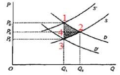Потерям излишка потребителя соответствует фигура ?) 1234 ?) 123 ?) 124 ?) 234 Вопрос id:2021892 Тема/шкала: 4337.03.01;МТ.01;1 - Модульный тест - Экономика общественного сектора На графике представлено избыточное налоговое бремя