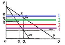 Максимальной ставке специфического налога, уплачиваемого монополистом, соответствует линия предельных издержек ?) 4 ?) 3 ?) 2 ?) 1 Вопрос id:2021897 Тема/шкала: 4337.03.01;МТ.01;1 - Модульный тест - Экономика общественного сектора На рисунке представлено перемещение налога на монополизированном рынке