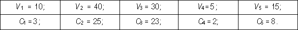 заданы матрицей стоимостей единичных перевозок и возможностями