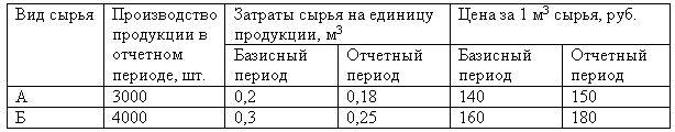 Сумма экономии (перерасхода) от изменения удельных расходов (руб.) ?) перерасход 40 400 ?) перерасход 25 400 ?) экономия 25 400 ?) экономия 40 400 Вопрос id:2142783 Тема/шкала: 4334.05.01;МТ.01;1 - Модульный тест - Статистика (курс 4) Известны следующие данные о затратах различных видов сырья на производство продукции: