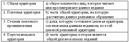 Список вопросов базы знанийСоциология рекламы (курс 1)Вопрос id:2147268 Тема/шкала: 1115.02.01;МТ.01;1 - Модульный тест - Социология рекламы Основным методом, применяемым при психографическом сегментировании, является ?) кластерный анализ ?) метод фокус-групп ?) корреляционный анализ ?) анкетирование Вопрос id:2147269 Тема/шкала: 1115.02.01;МТ.01;1 - Модульный тест - Социология рекламы Отношение аудитории данной телепрограммы ко всем, смотревшим телевизор (аудитории телевидения), называется ?) долей аудитории (Share) ?) коэффициентом обращения ?) накопленной аудиторией ?) рейтингом Вопрос id:2147270 Тема/шкала: 1115.02.01;МТ.01;1 - Модульный тест - Социология рекламы Отношение всех, ответивших положительно на вопрос о том, смотрел ли он телевизор в данный промежуток времени, ко всем опрошенным - это ?) доля аудитории (Share) ?) коэффициент обращения ?) общая аудитория телевидения (HUT) ?) рейтинг Вопрос id:2147271 Тема/шкала: 1115.02.01;МТ.01;1 - Модульный тест - Социология рекламы Отношение числа лиц, ответивших положительно на вопрос о потреблении данного рекламного носителя, к общему числу опрошенных - это ?) накопленная аудитория ?) рейтинг ?) доля аудитории (Share) ?) коэффициент обращения Вопрос id:2147272 Тема/шкала: 1115.02.01;МТ.01;1 - Модульный тест - Социология рекламы План размещения рекламного обращения в СМИ называется ?) медиапланом ?) план рекламной кампании ?) баннером ?) логосистемой Вопрос id:2147273 Тема/шкала: 1115.02.01;МТ.01;1 - Модульный тест - Социология рекламы По сравнению со стереотипом, имидж обладает___ возможностями ?) большими манипулятивными ?) еще не изученными манипулятивными ?) меньшими манипулятивными ?) такими же манипулятивными Вопрос id:2147274 Тема/шкала: 1115.02.01;МТ.01;1 - Модульный тест - Социология рекламы Показатель интенсивности рекламного воздействия - среднее число контактов с рекламой тех, кто вообще столкнулся с данной рекламой - называется ?) накопленной аудиторией (Gross Raiting Points - G.R.P.) ?) общей аудиторией телевидения (HUT) ?) средней частотой рекламного воздействия (Frequency) ?) охватом рекламной кампании (Reach) Вопрос id:2147275 Тема/шкала: 1115.02.01;МТ.01;1 - Модульный тест - Социология рекламы Понятие «социальный стереотип» ввел ?) У.Липпман ?) Р.Ривз ?) Дж.Траут ?) И.Кант Вопрос id:2147276 Тема/шкала: 1115.02.01;МТ.01;1 - Модульный тест - Социология рекламы Понятие «схематизма сознания» ввел ?) Дж.Траут ?) И.Кант ?) У.Липпман ?) Р.Ривз Вопрос id:2147277 Тема/шкала: 1115.02.01;МТ.01;1 - Модульный тест - Социология рекламы Пост-проверка проводится ?) после окончания рекламной кампании ?) на стадии разработки концепции рекламных сообщений ?) до начала рекламной кампании ?) во время проведения рекламной кампании Вопрос id:2147278 Тема/шкала: 1115.02.01;МТ.01;1 - Модульный тест - Социология рекламы Право на используемый товарный знак ?) ограничено 25 годами ?) ограничено 50 годами ?) не ограничено во времени ?) ограничено 10 годами Вопрос id:2147279 Тема/шкала: 1115.02.01;МТ.01;1 - Модульный тест - Социология рекламы При имиджировании состав индуцирующей информации непосредственно диктуется ?) планом по маркетингу ?) жизненным циклом товара ?) креативной идеей ?) социальными ожиданиями аудитории Вопрос id:2147280 Тема/шкала: 1115.02.01;МТ.01;1 - Модульный тест - Социология рекламы При имиджировании форма подачи индуцирующей информации должна апеллировать в первую очередь к ___аудитории ?) чувствам ?) разуму ?) знаниям ?) предыдущему опыту Вопрос id:2147281 Тема/шкала: 1115.02.01;МТ.01;1 - Модульный тест - Социологи