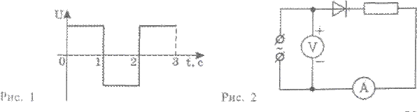 ?) не изменится ?) уменьшится ?) будет равна 0 ?) увеличится Вопрос id:2184420 Тема/шкала: 7004.02.02;Т-Т.01;1 - Тест-тренинг - Физика (школьное обучение) Конденсатор зарядили, а затем сдвинули пластины так, что расстояние между ними стало в 2 раза меньше. При этом энергия электрического поля конденсатора: ?) увеличилась в 4 раза ?) не изменилась ?) уменьшилась в 2 раза ?) уменьшилась в 4 раза ?) увеличилась в 2 раза Вопрос id:2184421 Тема/шкала: 7004.02.02;Т-Т.01;1 - Тест-тренинг - Физика (школьное обучение) Конденсатор один раз подключают к источнику тока напряжением на выходных клеммах 20 В, другой раз - напряжением 40 В. Указать как соотносятся заряды Q1 и Q2, накопившиеся на пластине конденсатора, подключаемой к положительной клемме источника в первый раз и во второй. ?) Q1 = 2Q2 ?) Q1 = Q2/2 ?) Q1 = Q2/4 ?) Q1 = Q2 Вопрос id:2184422 Тема/шкала: 7004.02.02;Т-Т.01;1 - Тест-тренинг - Физика (школьное обучение) На рисунке 1 показана зависимость напряжения от времени. На рисунке 2 показана схема, в которой вольтметр измеряет это напряжение. Определить, в какие интервалы времени сила тока, измеряемого амперметром, не равна нулю. (Диод идеален.)