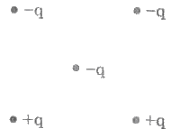 , действующая на отрицательный точечный электрический заряд, помещенный в центр квадрата, в вершинах которого находятся заряды +q, +q, -q, -q (см. рис.).