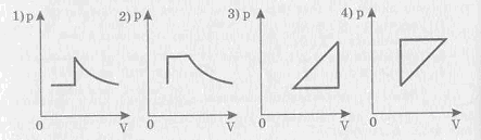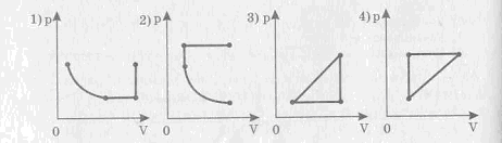 ?) 1 ?) 4 ?) 2 ?) 3 Вопрос id:2184579 Тема/шкала: 7004.06.02;Т-Т.01;1 - Тест-тренинг - Физика (школьное обучение) Идеальный газ сначала охлаждался при постоянном давлении, потом его давление уменьшалось при постоянном объеме, затем при постоянной температуре объем газа увеличился до первоначального значения. Этим изменениям состояния газа из графиков в координатных осях р - V соответствует