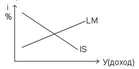 Установите результаты взаимодействия налогово-бюджетной и кредитно-денежной политик, если правительство для увеличения занятости увеличивает государственные закупки товаров, а Центральный банк увеличивает предложение денег, то … ?) кривая LM сдвинется влево и реальный доход снизится ?) кривая IS сдвинется вправо и доход увеличится ?) кривая LM сдвинется вправо и доход увеличится ?) кривая IS сдвинется влево и реальный доход снизится Вопрос id:2222617 Тема/шкала: 1657.05.01;Т-Т.01;2 - Тест-тренинг - Экономическая теория (курс 1) На рисунке показаны кривые IS (инвестиции-сбережения) и LM (ликвидность -деньги).
