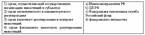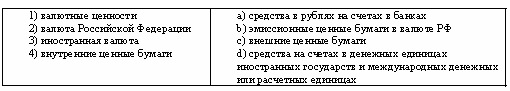 Вопрос id:2239966 Тема/шкала: 0082.03.04;МТ.02;2 - Модульный тест - Финансовое право Порядок вывоза и пересылки резидентами из Российской Федерации валютных ценностей устанавливает ?) Правительство Российской Федерации ?) Центральный банк Российской Федерации совместно с Государственным таможенным комитетом Российской Федерации ?) Федеральная налоговая служба ?) Центральный банк Российской Федерации Вопрос id:2239967 Тема/шкала: 0082.03.04;МТ.02;2 - Модульный тест - Финансовое право Правила, регулирующие договор купли-продажи, могут применяться к ?) банковскому кредиту ?) закладу ценностей в ломбард ?) товарному кредиту ?) государственному кредиту Вопрос id:2239968 Тема/шкала: 0082.03.04;МТ.02;2 - Модульный тест - Финансовое право Предварительное согласие Банка России требуется в случае приобретения в результате одной или нескольких сделок одним юридическим или физическим лицом либо группой лиц, связанных между собой или зависимыми друг от друга, акций (долей) кредитной организации в размере более ?) 10% ?) 20% ?) 49% ?) 50% Вопрос id:2239969 Тема/шкала: 0082.03.04;МТ.02;2 - Модульный тест - Финансовое право Предметом валютного контроля являются ?) денежные знаки иностранных государств ?) нерезиденты ?) валютные ценности ?) валютные операции Вопрос id:2239970 Тема/шкала: 0082.03.04;МТ.02;2 - Модульный тест - Финансовое право Предприятия, объединения, организации и учреждения независимо от организационно- правовых форм и сферы деятельности обязаны хранить свободные денежные средства в ?) учреждениях банков ?) Банке России ?) кассах ?) сейфах Вопрос id:2239971 Тема/шкала: 0082.03.04;МТ.02;2 - Модульный тест - Финансовое право Прием наличных денег кассами предприятий производится по ?) квитанции ?) расходным кассовым ордерам ?) расходным ведомостям ?) приходным кассовым ордерам Вопрос id:2239972 Тема/шкала: 0082.03.04;МТ.02;2 - Модульный тест - Финансовое право Прием наличных денег предприятиями при осуществлении расчетов с населением производится с обязательным применением ?) расходных ордеров ?) контрольно-кассовых машин ?) приходных ордеров ?) чеков Вопрос id:2239974 Тема/шкала: 0082.03.04;МТ.02;2 - Модульный тест - Финансовое право Режим свободного совершения валютных операций предполагает ?) отказ государства от валютного контроля ?) контроль за отдельными валютными операциями с целью предотвращения легализации преступных доходов ?) монополию государства на проведение валютных операций ?) полное сохранение системы валютного контроля Вопрос id:2239975 Тема/шкала: 0082.03.04;МТ.02;2 - Модульный тест - Финансовое право Российское законодательство к числу валютных ценностей относит ценные бумаги в ?) в золотом эквиваленте ?) иностранной валюте ?) национальной валюте ?) иностранной и национальной валюте Вопрос id:2239980 Тема/шкала: 0082.03.04;МТ.02;2 - Модульный тест - Финансовое право Термин «валюта» в литературе употребляется для обозначения ?) денежных знаков экономически развитых стран ?) коллективных денег ?) денежных знаков, документов или имущества, являющегося основанием для валютных расчетов ?) любых денег Вопрос id:2239982 Тема/шкала: 0082.03.04;МТ.02;2 - Модульный тест - Финансовое право Установите соответствие видов страхования и рисков ![]() ?) 1-d; 2-b; 3-a; 4-c ?) 1-c; 2-a; 3-b; 4-d ?) 1-a; 2-c; 3-d; 4-b ?) 1-b; 2-d; 3-c; 4-a Вопрос id:2239983 Тема/шкала: 0082.03.04;МТ.02;2 - Модульный тест - Финансовое право Установите соответствие: ![]() ?) 1-c; 2-b; 3-a; 4-d ?) 1-b; 2-c; 3-d; 4-a ?) 1-d; 2-a; 3-b; 4-c ?) 1-a; 2-d; 3-c; 4-b Вопрос id:2239984 Тема/шкала: 0082.03.04;МТ