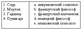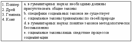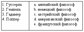 Список вопросов базы знанийФилософские проблемы конкретнонаучных дисциплинВопрос id:2285595 Тема/шкала: 1213.05.01;МТ.01;1 - Модульный тест - Философские проблемы конкретнонаучных дисциплин По определению Серра, единственной темой наук классического периода является ?) тема креационизма ?) экзегетика ?) идея индетерминизма ?) тема незыблемой точки Вопрос id:2285596 Тема/шкала: 1213.05.01;МТ.01;1 - Модульный тест - Философские проблемы конкретнонаучных дисциплин По определению Хайдеггера, метод, с помощью которого та или иная предметная область охватывается представлением, имеет характер ?) интерпретации ?) интенциональности ?) «вчувствования» ?) объяснения Вопрос id:2285597 Тема/шкала: 1213.05.01;МТ.01;1 - Модульный тест - Философские проблемы конкретнонаучных дисциплин По определению Хайдеггера, эксперимент начинается с ?) наблюдения ?) принятия скрытых параметров ?) акта веры ?) полагания закона Вопрос id:2285598 Тема/шкала: 1213.05.01;МТ.01;1 - Модульный тест - Философские проблемы конкретнонаучных дисциплин Позитивистская исследовательская программа направлена на ?) получение объективного знания ?) интепретационные концепции ?) преодоление ограниченности научного подхода ?) изучение знаковых социальных систем Вопрос id:2285599 Тема/шкала: 1213.05.01;МТ.01;1 - Модульный тест - Философские проблемы конкретнонаучных дисциплин Понятие «аномия» ввел в социологию ?) Дюркгейм ?) Грамши ?) Конт ?) Мертон Вопрос id:2285600 Тема/шкала: 1213.05.01;МТ.01;1 - Модульный тест - Философские проблемы конкретнонаучных дисциплин Попытка разведения индукции на логическую и художественно-инстинктивную принадлежит ?) фон Вригту ?) Канту ?) Гельмгольцу ?) Попперу Вопрос id:2285601 Тема/шкала: 1213.05.01;МТ.01;1 - Модульный тест - Философские проблемы конкретнонаучных дисциплин Постстурктурализм определяет, что личности являются творениями ?) доступных им дискурсов ?) обстоятельств ?) социального бытия ?) природных факторов Вопрос id:2285602 Тема/шкала: 1213.05.01;МТ.01;1 - Модульный тест - Философские проблемы конкретнонаучных дисциплин Предвосхищение результатов наблюдений на основе данных опыта называется ?) экспериментом ?) дедукцией ?) гипотезой ?) индукцией Вопрос id:2285603 Тема/шкала: 1213.05.01;МТ.01;1 - Модульный тест - Философские проблемы конкретнонаучных дисциплин Принцип единообразия научного метода характерен для ?) структурализма ?) модернизма ?) герменевтики ?) позитивизма Вопрос id:2285604 Тема/шкала: 1213.05.01;МТ.01;1 - Модульный тест - Философские проблемы конкретнонаучных дисциплин Принцип причинности связан с ?) концепциями времени ?) априоризмом ?) эмпиризмом ?) детерминизмом Вопрос id:2285605 Тема/шкала: 1213.05.01;МТ.01;1 - Модульный тест - Философские проблемы конкретнонаучных дисциплин Природа антисциентизма в ?) отрицании эмпиризма ?) отрицании правомерности научных спекуляций ?) непризнании лидирующего положения науки в современной интеллектуальной традиции ?) отрицании принципа единообразия научного метода Вопрос id:2285606 Тема/шкала: 1213.05.01;МТ.01;1 - Модульный тест - Философские проблемы конкретнонаучных дисциплин Проблема бюрократии при переходе от капитализма к социализму связана ?) с классовой структурой общества ?) с усилением скрытой формы ее власти ?) со столкновением профессиональной эффективности управления и демократических принципов представительства ?) с вопросами социализации Вопрос id:2285607 Тема/шкала: 1213.05.01;МТ.01;1 - Модульный тест - Философски